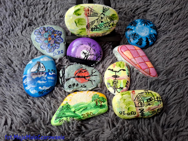 Dziś historia małego kamyczka na którym w ubiegłym roku namalowałam trzy małe bałwanki. Wędrowały sobie po kraju przez cały rok i sama jestem ciekawa gdzie teraz przebywają. Czekam na informacje. Od świąt do świąt - wędrujące kamyczki