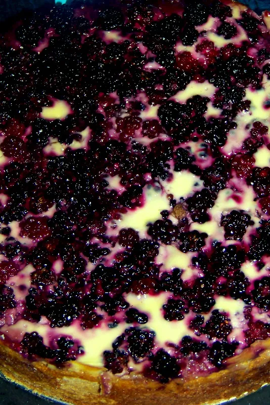 - Serek utrzeć z żółtkami, wylać na podpieczonym spodzie i posypać jeżynami.