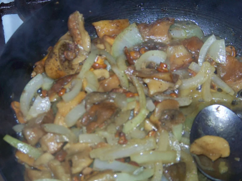 Grzyby z cebulką.