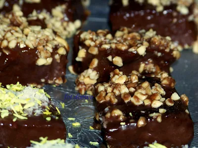 Każdą  kostkę ciasta nadziewać na szpatułkę od szaszłyka lub widelec i umoczyć w polewie.