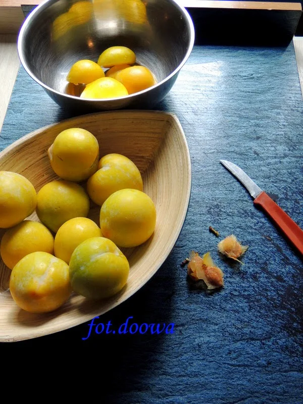 Śliwki przekroiłam na połówki i wyjęłam pestki.