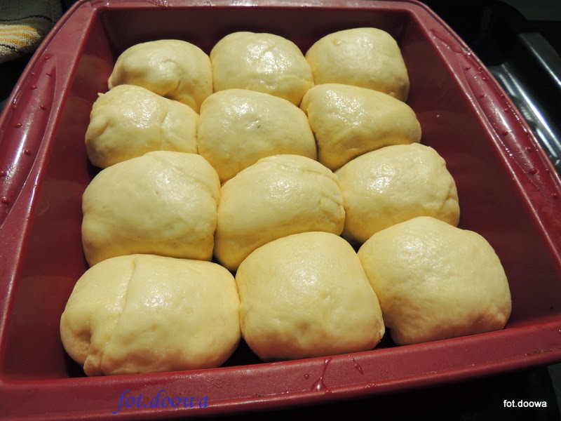 Kiedy ciasto wyrosło podzieliłam je na 12 równych części.