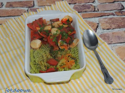Gotowałam 5 minut a potem dodałam oczyszczone muszle małży, gotowałam pod przykryciem aż muszle się otworzyły.