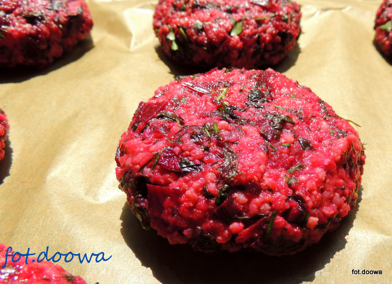 Burgery jaglane z botwinką.
