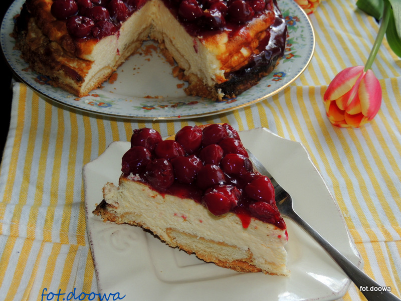 Sernik z frużeliną wiśniową.