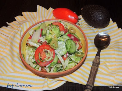 Sałatka z kapusty pekińskiej, awokado i oliwek.