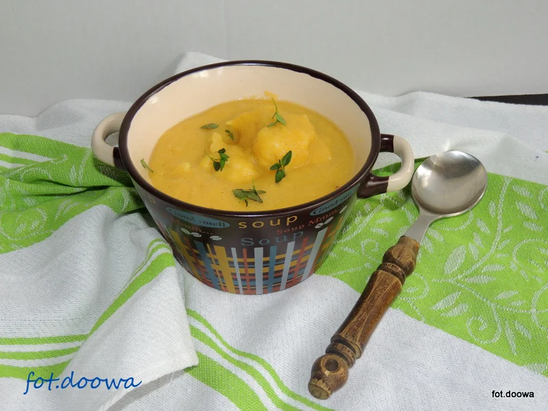Wytrawna zupa kokosowa z plantanami i kluseczkami.