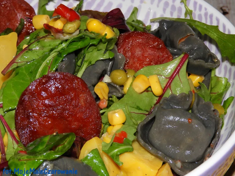 Sałatka z pierożkami.